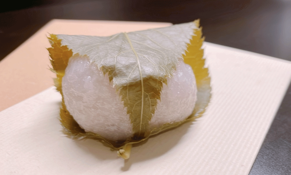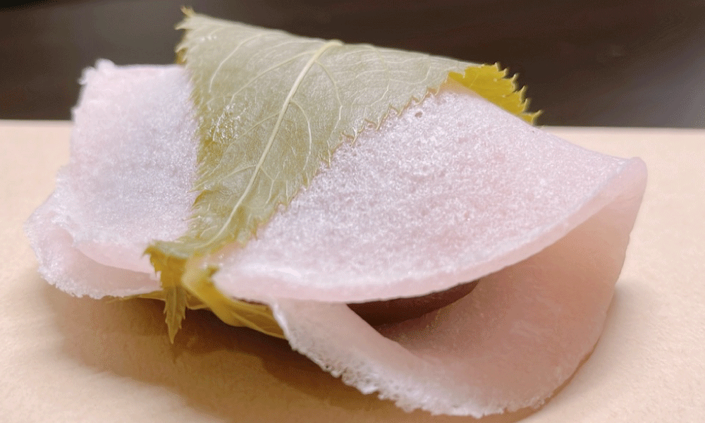 桜もちといえば春らしい淡いピンク色が目を引きます。