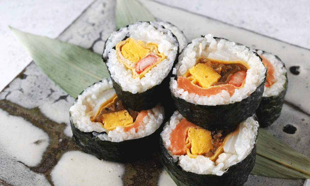 そんな外出を助けるアイテムとして、バリエーション豊かな贅沢太巻で売り場を盛り上げるのはいかがでしょうか?弊社で扱う冷凍巻き芯は、具材を全形海苔1枚分の幅に合わせてまとめているのが特徴です。