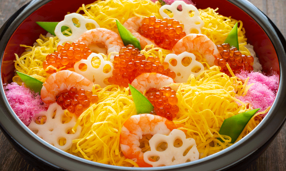 その見た目の華やかさから、桃の節句であるひなまつりに華を添えて食べられてきました。